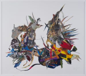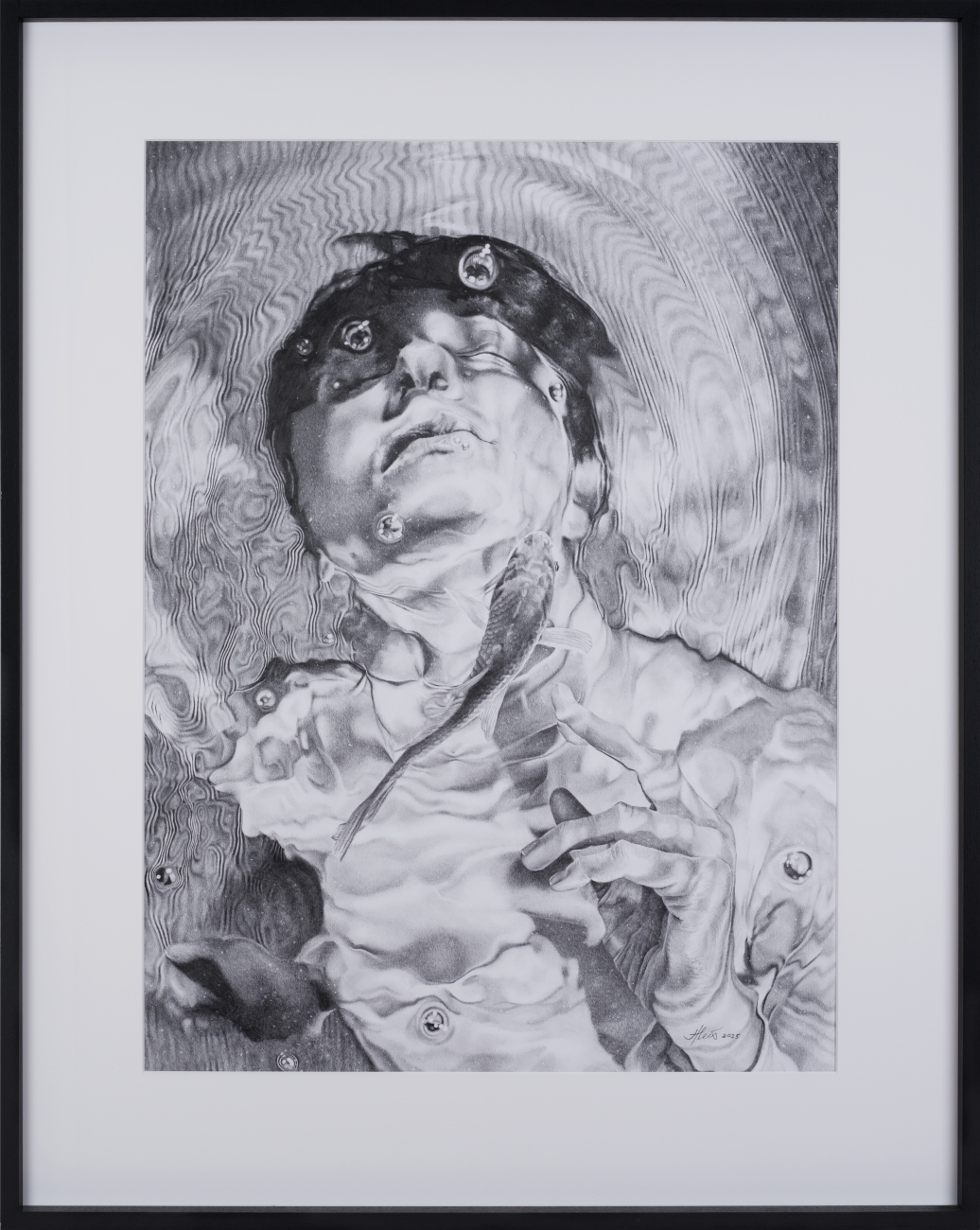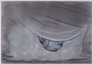 2025. Marmoreering, süsi ja pastell paberil. 70 × 100 cm
