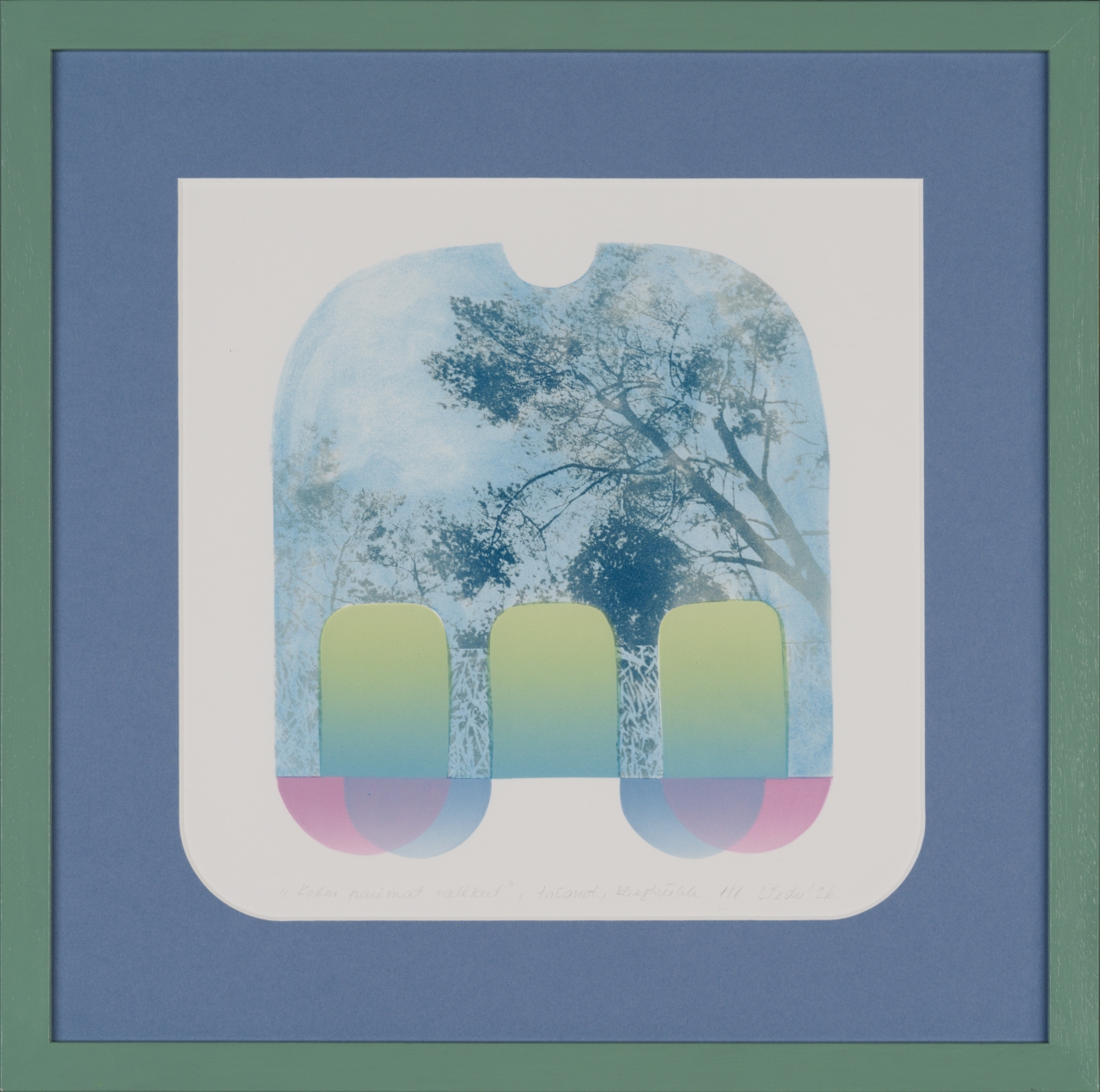 2026. Tsüanotüüpia ja kõrgtrükk paberil, 1/1. 35 × 35 cm (43 × 43 cm raamiga)