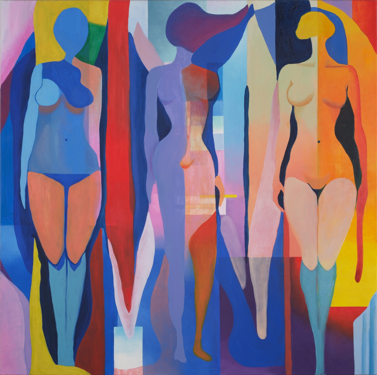 Kolm graatsiat kogu oma ilus, sulandumas värvide pillerkaarde. Julge värvikäsitlus ja erisugused vormid sulandumas ja vastandumas. Pealkiri viitab sellele, et nad on vaatamiseks välja pandud. Kas teevad nad seda sirgselgelt või on tajuda mõningast ujedust?