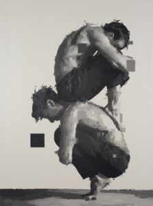 Mustvalge maal kujutab habrast tasakaalu, mis püsib vaid usaldusel. Iseenda ja üksteise toetusevajadus, koorem ja tugi korraga, piiratus ja jõud, mis meid kannab. Iseendast ei ole võimalik lahkuda ja selles peitub nii inimese piiratus kui ka jõud.