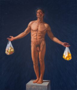 On vaataja otsustada, millest see maal räägib. Kas see räägib usust, tarbimisest, asjade võrreldamatusest mustvalges maailmas, vitamiinidest või millestki täiesti muust. Mida sina arvad?