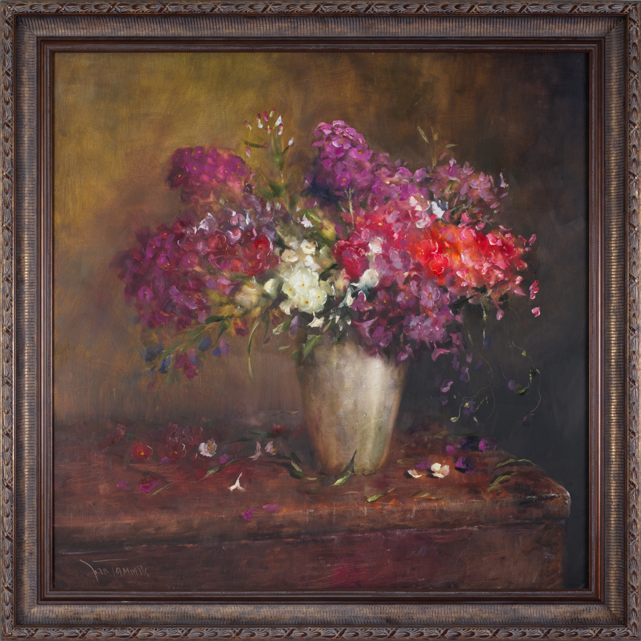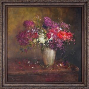 Klassikalise maalikeelega natüürmort kujutamas vaikselt närtsivaid lilli. Igal asjal on oma aeg ‒ aeg sündida, aeg elada, aeg surra. Klassika aga ei sure kunagi, see on alati lummav ja aegumatu. Väärikas teos kaunistaks ka kõige nõudlikumat interjööri!